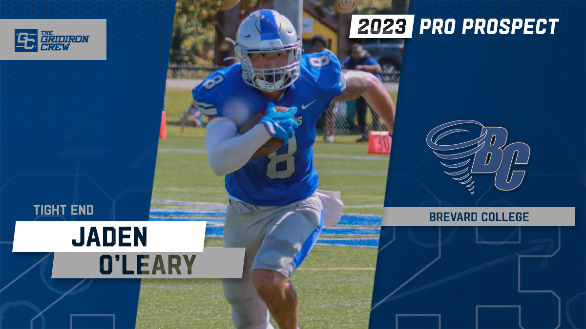 Name: Jaden O’LearySchool: Brevard CollegePosition: TE/FBHeight: 6-2Weight: 225 Q: What goals did you set and/or accomplish in your final collegiate season? My goals set for my final season were to win conference with my team and be better than I was last season and show out. With the help of my team and coaches I achieved 1st Team All Conference…