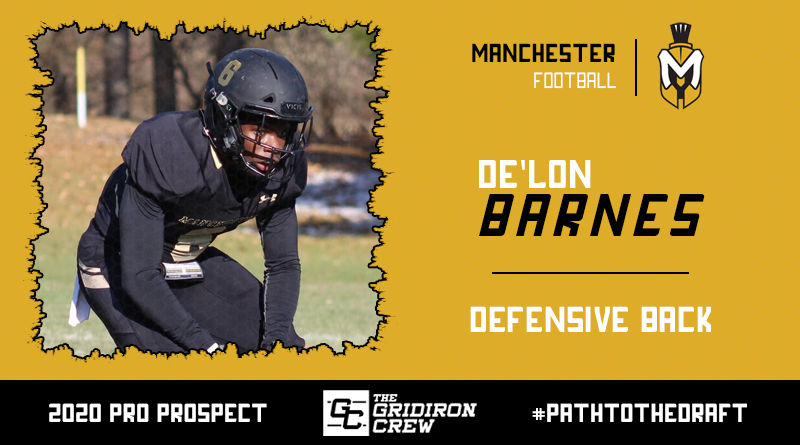 De’Lon Barnes: 2020 Pro Prospect Interview The Gridiron Crew 6 years ago Name: De’Lon BarnesSchool: ManchesterPosition: DBHeight: 5’11″Weight: 190