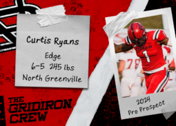 Name: Curtis RyansSchool: North Greenville University Position: EDGE Height: 6-5Weight: 245 Q: What goals did you set and/or accomplish in your final collegiate season? Goal 1: lead the conference in sacks Goal 2: Defensive player in conference Goal 3: Lead my teammates to the playoffs Although I personally didn’t meet all my goals, I had a personal record for sacks. Also set…
