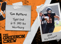 Name: Tom ButtersSchool: Wartburg College Position: Tight End Height: 6-5Weight: 240 Q: What goals did you set and/or accomplish in your final collegiate season? I wanted to have a better season than I did last year, I believe I did, and I wanted to capitalize on some of my strengths and weaknesses I identified last year. Q: What would your coaches and…