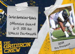 Name: Carlos Goncalves-RobaloSchool: University of Massachusetts Dartmouth Position: OGHeight: 6-2Weight: 325 Q: What goals did you set and/or accomplish in your final collegiate season? Consecutive conference championship titles, nominations, and accolades demonstrate our sustained excellence in conference competitions. Q: What would your coaches and teammates say about the type of player you are? I’m a relentlessly humble player, constantly fueled by…
