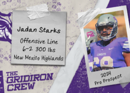 Name: Jadan StarksSchool: New Mexico Highlands University Position: OLHeight: 6-2Weight: 300 Q: What goals did you set and/or accomplish in your final collegiate season? My goals this past season were to improve my overall game become a better teammate for my team and grow as a man, I wanted to have zero sacks given up on the year and help lead…