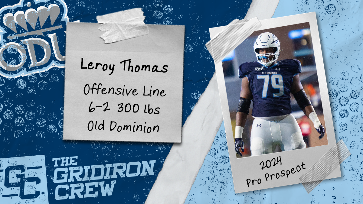 Name: Leroy ThomasSchool: Old Dominion UniversityPosition: OLHeight: 6-2Weight: 300 Q: What goals did you set and/or accomplish in your final collegiate season? One of the goals I had for this past season was going to and winning a bowl game. Although we came up short, it took a lot of grit for our team to get to a bowl game….