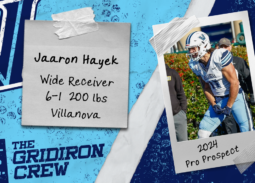 Name: Jaaron HayekSchool: Villanova Position: WRHeight: 6-1Weight: 200 Q: What goals did you set and/or accomplish in your final collegiate season? To become a leader and win a national championship. Q: What would your coaches and teammates say about the type of player you are? Play with 100% effort every play and I play for the guys next to me more…