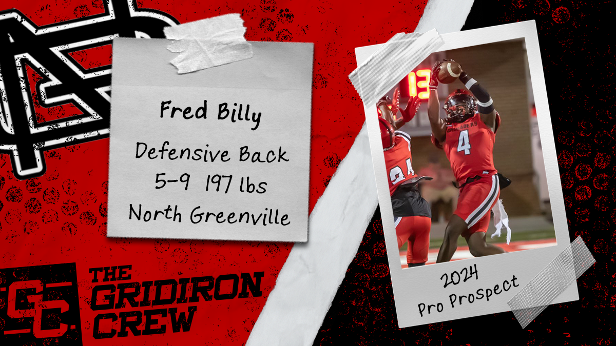 Name: Fred BillySchool: North GreenvillePosition: Defensive BackHeight: 5-9Weight: 197 Q: What goals did you set and/or accomplish in your final collegiate season? One goal I set for myself was to become a captain and leader for my team. Q: What would your coaches and teammates say about the type of player you are? They would say I’m the first in…