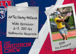 Name: Jon’Tez Chaney-McClarinSchool: MidAmerica Nazarene University Position: WR Height: 6-2Weight: 220 Q: What goals did you set and/or accomplish in your final collegiate season? The best goal I was able to accomplish was winning a ring for my final college career. Q: What would your coaches and teammates say about the type of player you are? They will say I’m a hard…