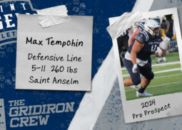 Name: Max TempchinSchool: Saint Anselm CollegePosition: DLHeight: 5-11Weight: 260 Q: What goals did you set and/or accomplish in your final collegiate season? In my final collegiate season, my biggest goal was to lead the best defense that I could, while being the best player in the conference. By the end of the season, I found myself as the conference player…