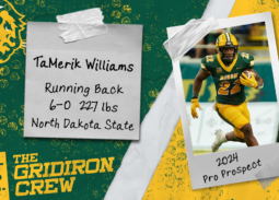 Name: TaMerik WilliamsSchool: North Dakota State UniversityPosition: RBHeight: 6-0Weight: 227 Q: What goals did you set and/or accomplish in your final collegiate season? Stay consistent and be a great teammate. Q: What would your coaches and teammates say about the type of player you are? Explosive, Fast, Physical, Game Changer. Q: When you are studying film, what are the things…