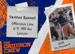 Name: Vances RussellSchool: Lincoln University of Pennsylvania Position: OLHeight: 6-3Weight: 355 Q: What goals did you set and/or accomplish in your final collegiate season? One goal that I set for myself was to help better my team and by being a leader who can listen to and lead and that’s why my team went from my freshman year (0-10) to the…