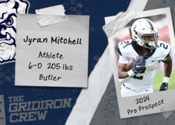 Name: Jyran MitchellSchool: Butler UniversityPosition: RB/WR/KRHeight: 6-0Weight: 205 Q: What goals did you set and/or accomplish in your final collegiate season? The goal I set for my last year was to dominate and win games with my team,I knew coming back with the coaching staff that recruited me about of high school I would get the opportunity and that’s all…