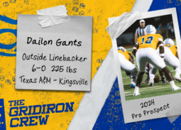 Name: Dailon GantsSchool: Texas A&M-Kingsville Position: OLBHeight: 6-0Weight: 225 Q: What goals did you set and/or accomplish in your final collegiate season? My goal was to finish the season with my brothers try to win a championship. Q: What would your coaches and teammates say about the type of player you are? Hardworking player come to work everyday do anything to…