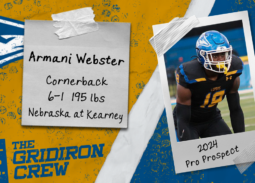 Name: Armani WebsterSchool: University of Nebraska at Kearney Position: CB/DB Height: 6-1Weight: 195 Q: What goals did you set and/or accomplish in your final collegiate season? I wanted to get all conference/ all american honors in my final year. I also wanted to to go without giving up a TD. Q: What would your coaches and teammates say about the type of…