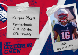 Name: Donyai DixonSchool: Colorado State University-Pueblo Position: CB Height: 6-3Weight: 195 Q: What goals did you set and/or accomplish in your final collegiate season? My goal was to be an All-American, and to get an invite to a senior bowl. Q: What would your coaches and teammates say about the type of player you are? That I’m a hardworking player, I’m not…