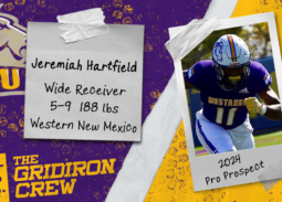 Name: Jeremiah Joseph HartfieldSchool: Western New Mexico University Position: WR Height: 5-9Weight: 188 Q: What goals did you set and/or accomplish in your final collegiate season? In my senior sea of college football. I told myself that I was going to have the best season of my career performance wise. So, my goal was 6 touchdowns or more, over 550 receiving yards,…