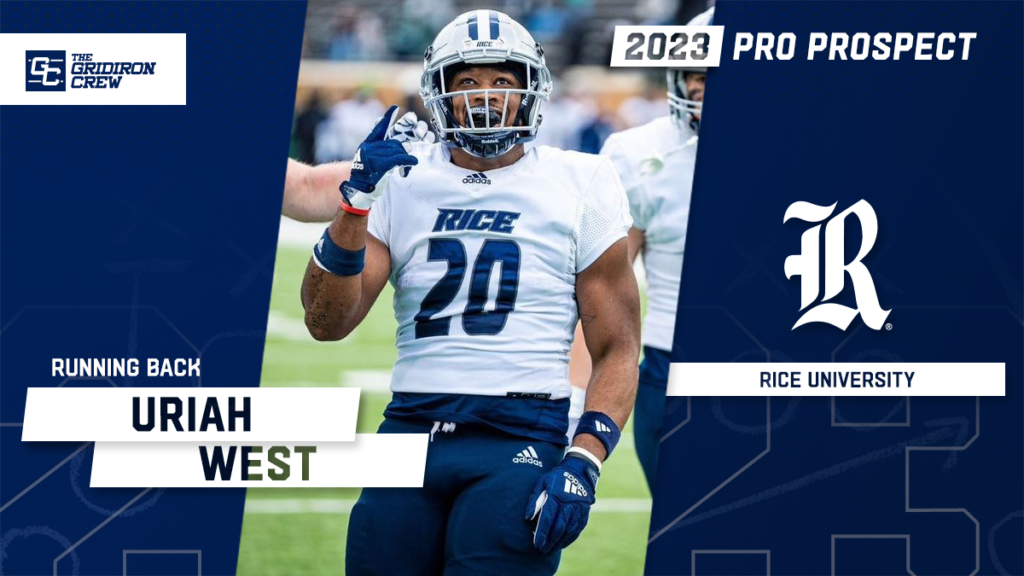 Good afternoon, my name is Uriah West, I just finished my final season of college football splitting time between RICE and Jacksonville state university. I am confident in my ability to be a down hill back supplementing in 3rd and short, pass protection, and specialty back field play as I am capable of doing much more without being the ball carrier. I play special teams and I have started on every special teams before. If you need it done I am your guy and I am coachable with one year experience in an nfl system as rice does things offense according to next level play calling and system structure.